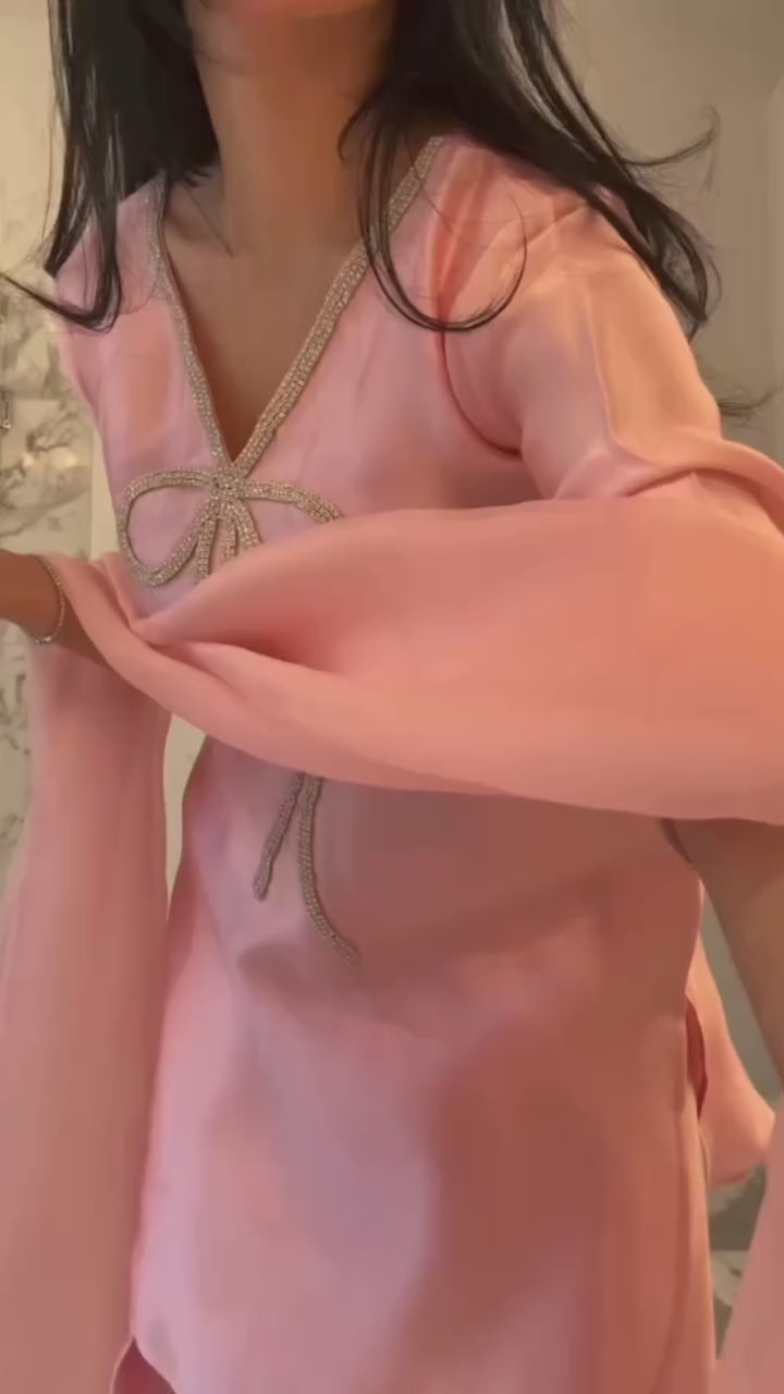 Trending this season! Who doesn’t love a good bow detailing! The Bow Set is made up of crystal like stones across the neckline, sleeves . YES! We do minis in these to match with your daughters .
