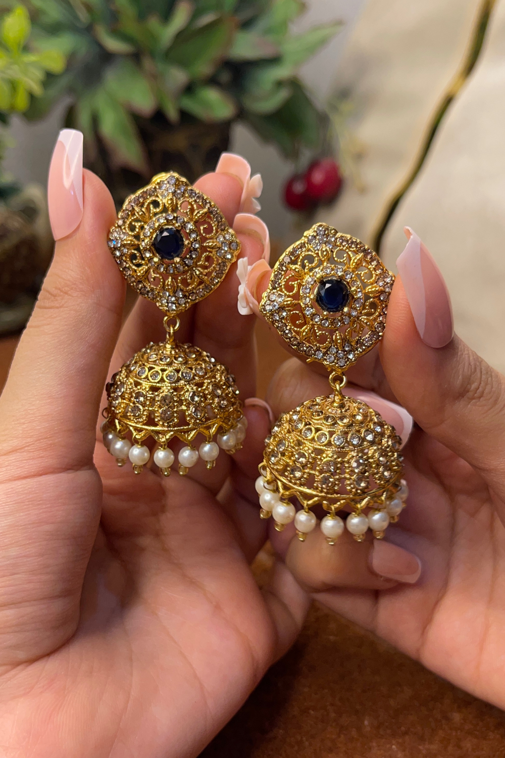 Whether you're dressing up for a traditional event or looking to add a touch of glam to your festive outfits, these jhumka's are the perfect accessory. Pair them with a saree, lehenga, or anarkali to complete your regal ensemble!